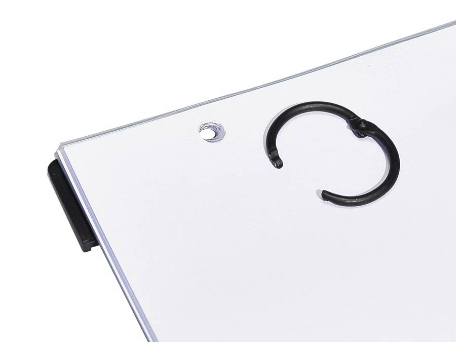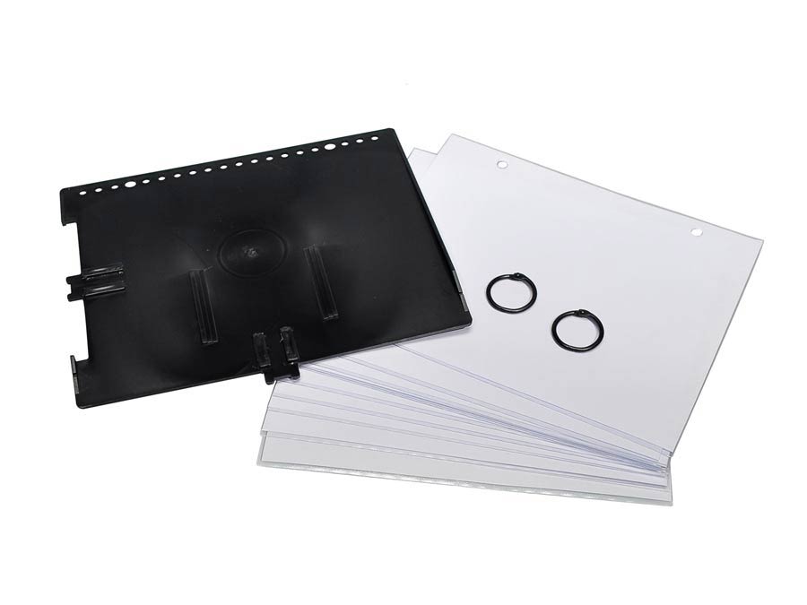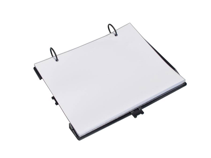 Porta spartiti con 10 buste trasparenti, misura 15 x 18 cm. Copertina in ABS colore nero e doppio attacco per lira. Sistema clip facile.