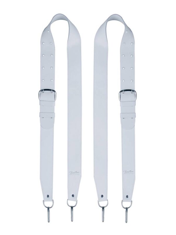 Imbracatura a tracolla per cassa da parata, in pelle, colore bianco, coppia