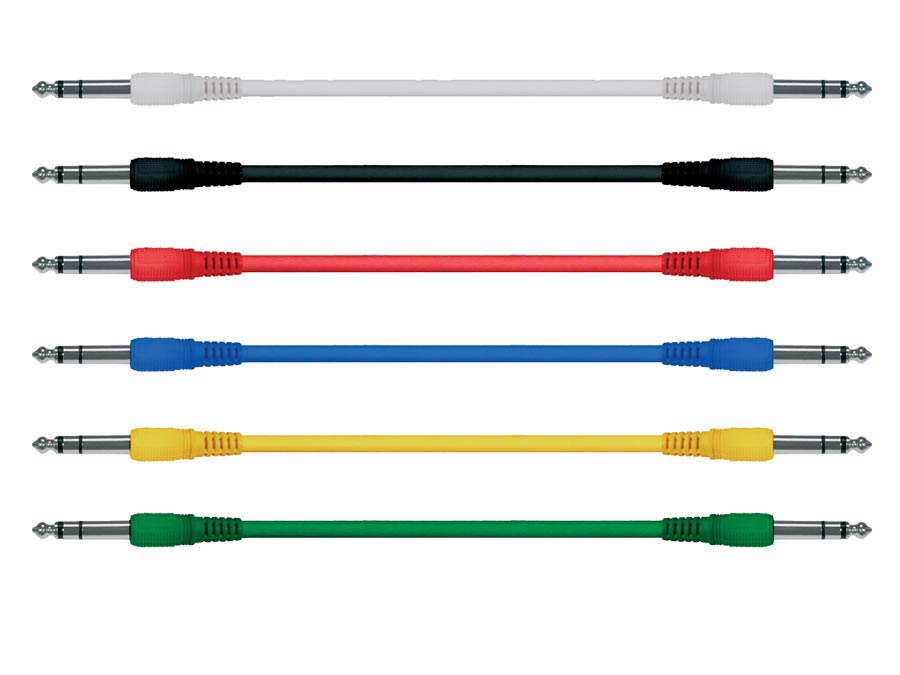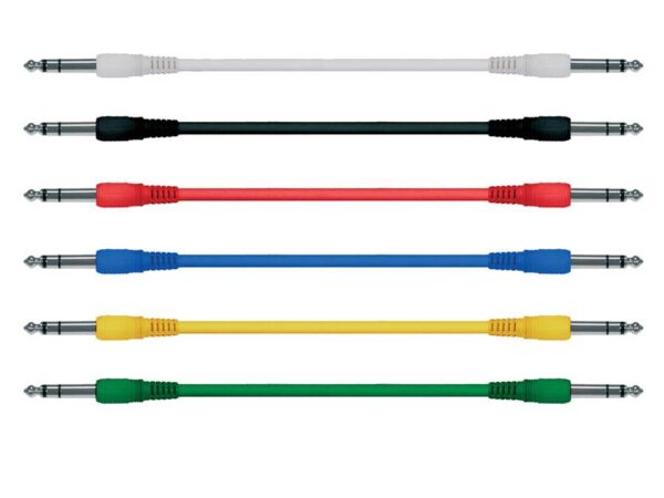 Confezione da 6 cavi patch stereo, jack – jack, 0,3 metri, 6 colori assortiti.