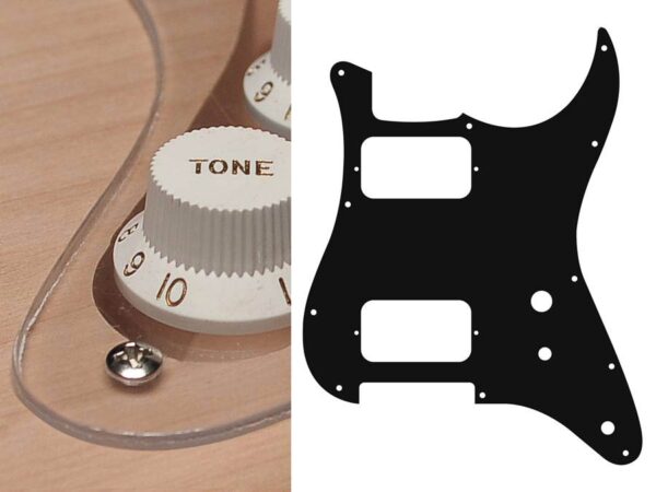 Battipenna per chitarra elettrica, modello Stallion, monostrato, trasparente HH, 2 fori per potenziometri, mini interrutore a leva