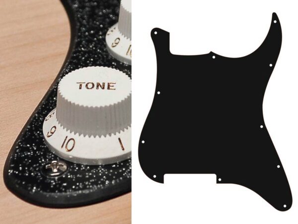 Battipenna per chitarra elettrica, modello Stallion, 2 strati, colore nero sparkle, senza fori (solo fori per le viti)
