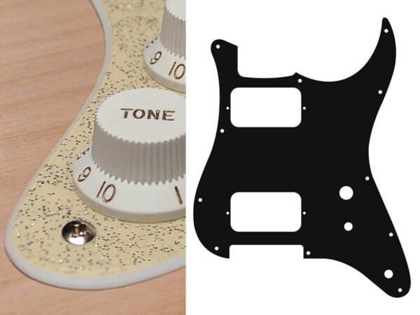 Battipenna per chitarra elettrica, modello Stallion, 2 strati, finitura dorata sparkle, HH, 2 fori per potenziometri, mini interrutore a leva