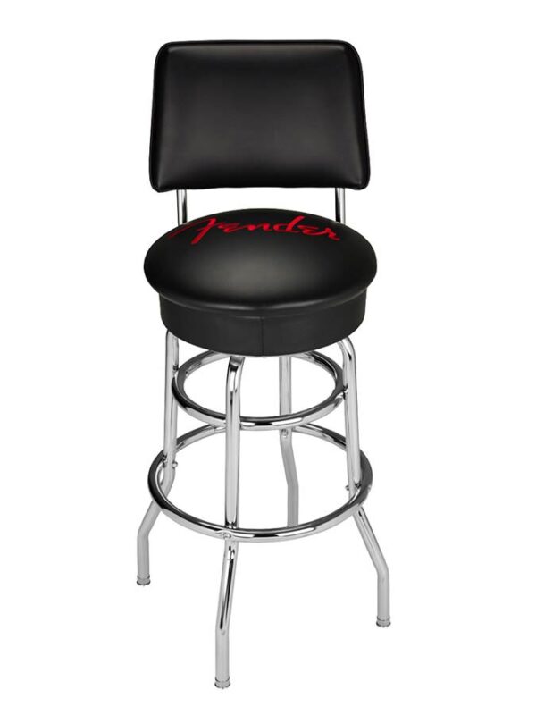 Fender’s own made in the USA high-end vegan leather barstool with embroidered spaghetti logo will look great in your home, office or studio.