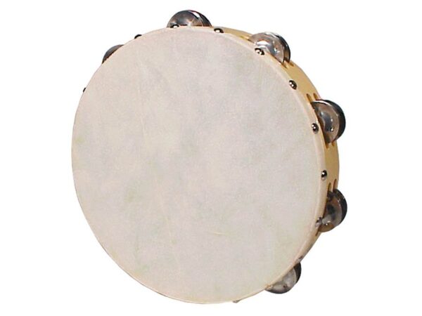Tamburello 10”, con pelle naturale non conciata, 18 piattini, in legno