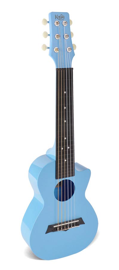 Guitarlele in policarbonato, colore celeste, finitura lucida.