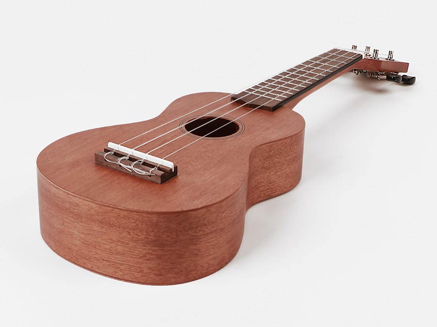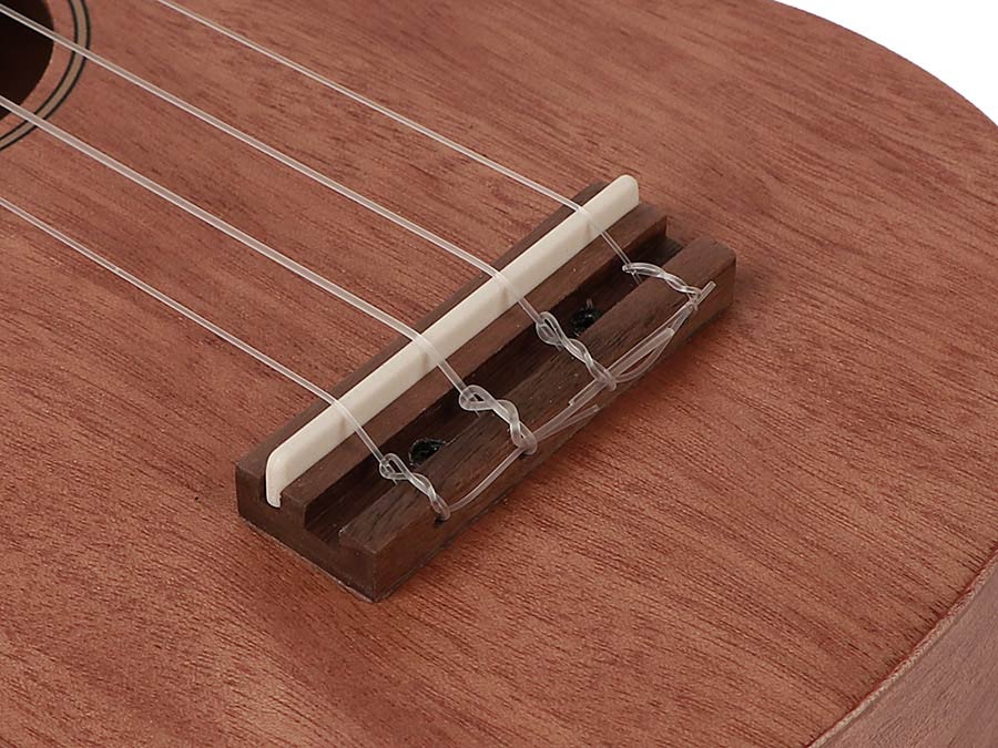Ukulele soprano, color legno, finitura satinata. Dotato di corpo in mogano, tastiera in palissandro e meccaniche per chitarra.