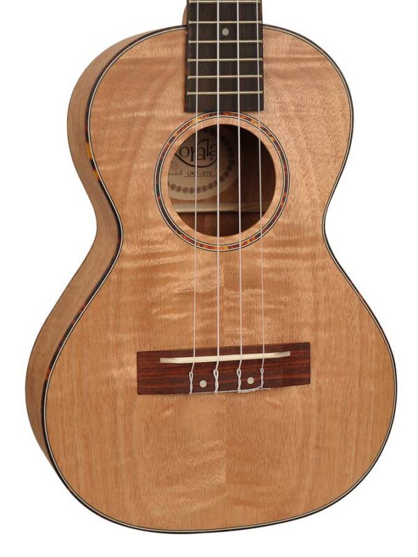 Ukulele tenore in okume fiammato. Dotato di meccaniche per chitarra Rotomatic e di un elegante binding tartarugato.