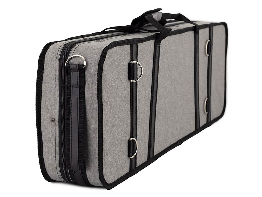 Set violino 1/2, set completo, verniciatura in nitrocellulosa, parti in ebano, marezzatura elegante, astuccio rettangolare con 2 tracolle, 4 sedi per gli archi e un cassetto contenitore per gli accessori. Archetto e pece inclusi.