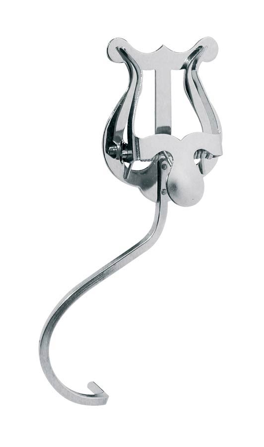 Letturino per sassofono in nickel. Asta con tripla piegatura. Lira di dimensione piccola.