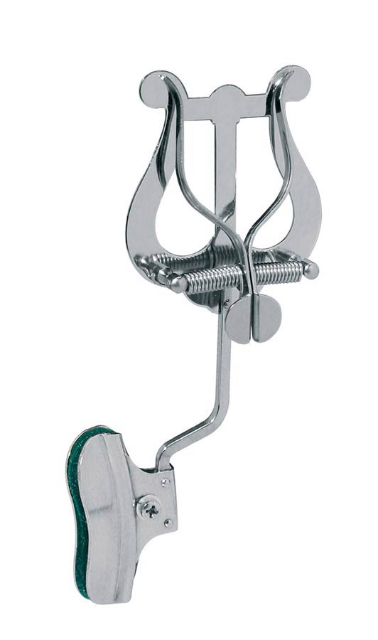 Letturino per trombone in nickel da attaccare sulla campana. Lira di dimensione grande.