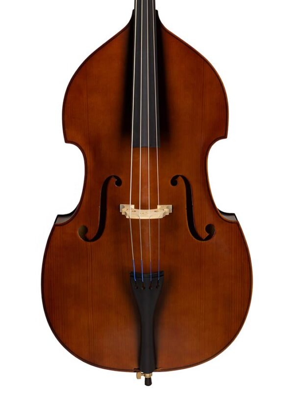Set contrabbasso 3/4, costruito in legno compensato verniciato in nitrocellulosa, tastiera in acero verniciato nero, arco e borsa inclusi.