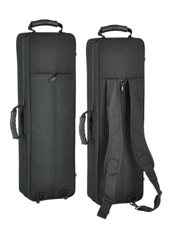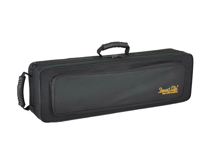 Sassofono soprano in Sib modello corpo unico, finitura in oro con chiave frontale del Fa e Fa# acuto, chiave piatta a doppia. Campana incisa, viti a perno e regolazione meccanica. Cuscinetti Luciano Pisoni e risuonatori in metallo. Include astuccio semirigido.